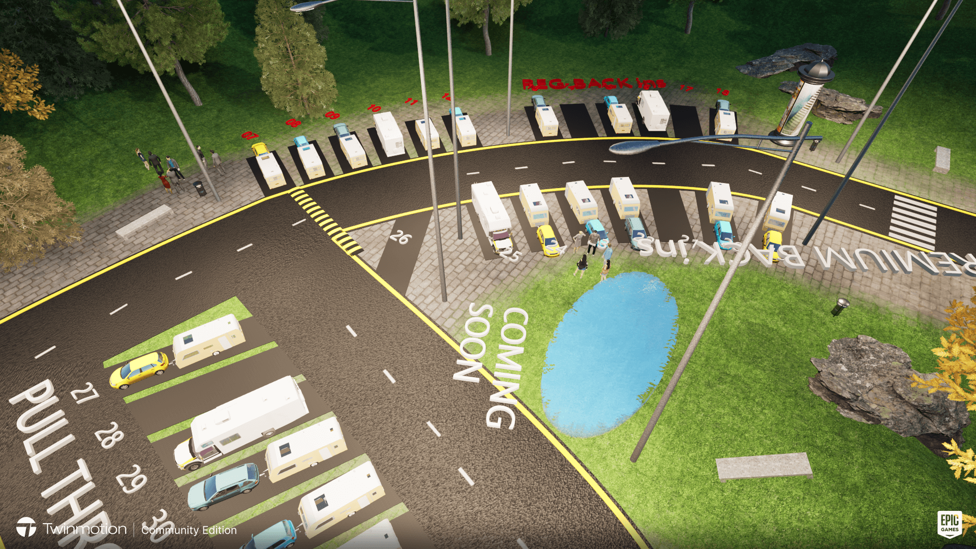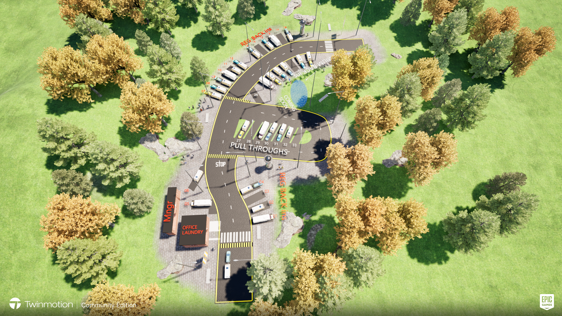 The car park is located directly at the Museum. There are 65 wide car park spaces, of which 20 are covered.